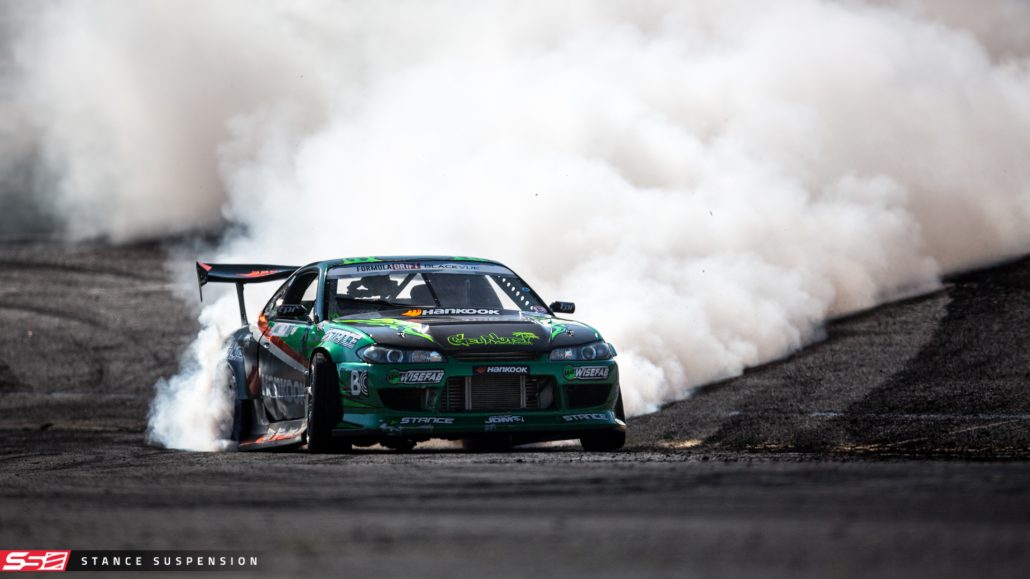 Going off the bank and into the first clipping point, Forsberg came through the smoke and crashed into Forrest’s door. There are many theories as to why it happened; some blame Forrest for throwing in massive angle (as he normally does) and scrubbing too much speed, others say that Forsberg knew his chase run had been poor and was trying to gain some proximity and got lost in Forrest’s smoke, etc. Regardless, the car is fixable and Forrest wasn’t injured at all. At the end of the day, the sport is fun to watch and participate in, but in no way does winning become equivalent to someone’s safety. The judges awarded Forsberg the win, which led to a loud outrage of boos and other not so friendly terms aimed towards the judges, as well as one of the biggest controversies in FD history. Through all of the drama and speculations, we are proud to support all of our drivers in their programs and help them chase their dreams.